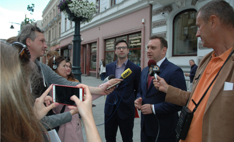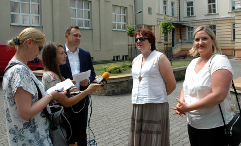 O wsparciu dla nauczycieli zwalnianych z gimnazjów na konferencji prasowej mówiły wiceprzewodnicząca Rady Miejskiej Małgorzata Niewiadomska – Cudak i wiceprzewodnicząca Klubu Radnych SLD Małgorzata Moskwa – Wodnicka.