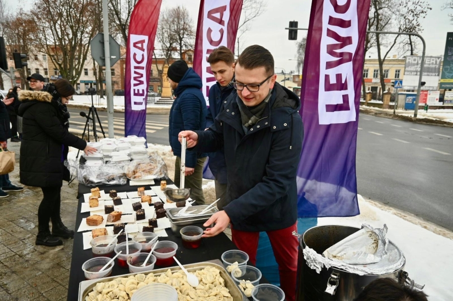 "To już stało się pewnego rodzaju naszą tradycją lewicową, że po prostu dzielimy się posiłkiem. W Łodzi dzielimy się już od kilkunastu lat, ale kilka lat temu rozpoczęliśmy taką akcję w całym województwie łódzkim. W poprzednich latach byliśmy w Zduńskiej Woli, Sieradzu, Piotrkowie Trybunalskim, Tomaszowie Mazowieckim i innych miastach, a dzisiaj naszą wyprawę zaczęliśmy od Skierniewic, a teraz jesteśmy w Rawie Mazowieckiej i będziemy jeszcze w Tomaszowie Mazowieckim. Dzielimy się posiłkiem, który składa się z ciepłego barszczu z uszkami, wegetariańskiej kapusty z grochem, pierogów z kapustą i grzybami, a także słodkiego ciasta. Chcemy tym też wskazać na pewien problem. Problem ubóstwa, który rozpowszechnia się w Polsce. Z raportu wynika, że poziom ubóstwa w Polsce rośnie. Chcemy uczulić wszystkich tych, którzy mogą sobie pozwolić na to, żeby podzielić się posiłkiem lub czymkolwiek innym, chociażby dobrym słowem, chociażby jakimś prezentem, żeby również dzielili się z innymi, bo dzielenie się daje radość nam wszystkim" - stwierdziła posłanka Anita Sowińska.