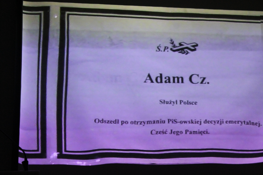 Po obejrzeniu filmu, zaproszony na spotkanie mjr Stanisław Kuśmierski prezes Oddziału Powiatowego Związku Rezerwistów i Weteranów WP w Radomiu, nawiązując do przestrogi redaktora seniora Mariana Turskiego wypowiedzianej na spotkaniu w Muzeum Zagłady w Oświęcimiu przypomniał śmierć swego dziadka podczas trzymiesięcznego pobytu w tymże obozie w Oświęcimiu. Jego hitlerowskie władze poinformowały rodzinę, że zmarł na… zapalenie płuc. Poseł Rozenek nawiązał z kolei do rozstrzelania w 1946 roku w lesie pod Skaryszewem przez faworyzowanych obecnie prze PiS Żołnierzy Wyklętych jadącego do Warszawy wnuka zesłańca syberyjskiego majora WP Alfreda Wnukowskiego, jego ciężarnej żony Ireny i kilku towarzyszących im żołnierzy . W dyskusji fakty krzywd i obrażania ludzi ujawnili też członkowie Federacji Służb Mundurowych z terenu Radomia i okolic oraz młodzi ludzie w tym uczniowie, apelując do partii lewicowych o konsekwentne przeciwstawianie się faktom bezprawia w wydaniu polityków rządzących obecnie Polską.