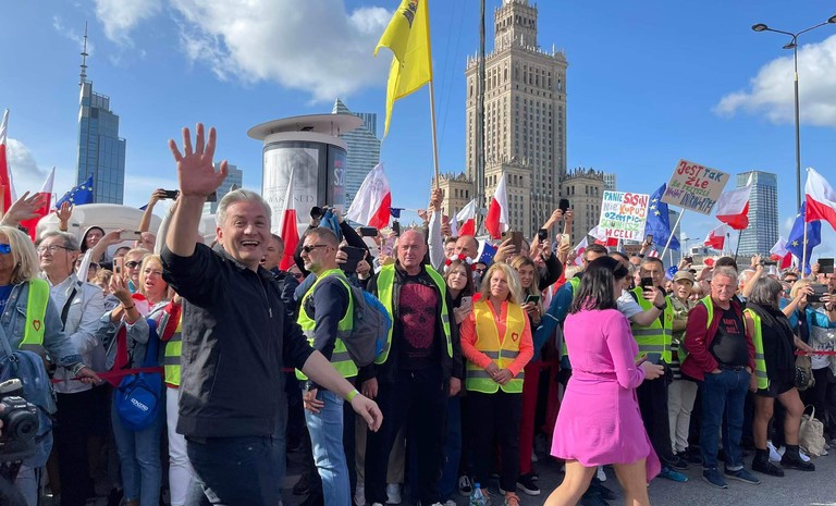 Dzisiaj serce Polski bije tutaj na Rondzie Praw Kobiet w Warszawie, ponieważ to kobiety wygrają te wybory! Dziewczyny, jesteście ...